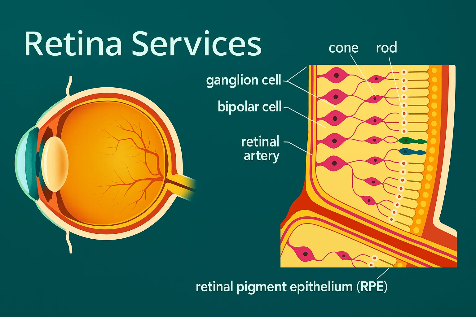 We are equipped with latest sutureless Micro Vitrectomy system for Retinal Detachment, Diabetic retinopathy, Vitreous Hemorrhage, Macular hole, Dislocated Lens and all other retinal conditions